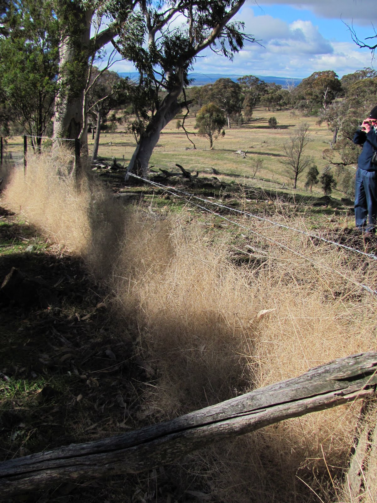 Grass blown against the border fence | Red stringy bark | 3 Peter Dowling addresses the Talk and Walk participants |
