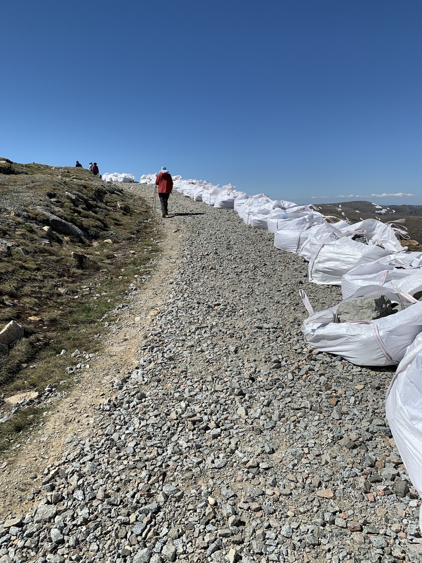 Obligatory photos at the top, back down. Main Rawson Pass toilets closed for maintenance, portable ones in place.